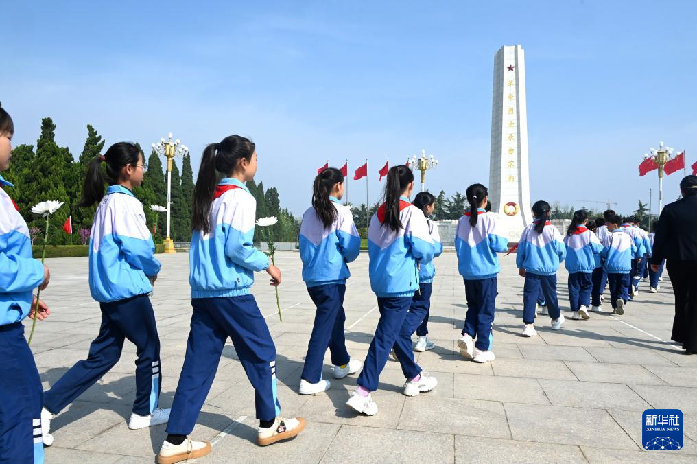4月1日,学生们来到河南省开封市烈士陵园缅怀英烈。