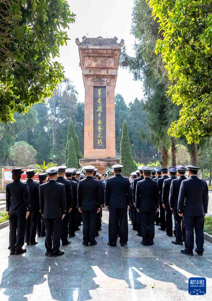 4月1日,公安民警在云南丽江烈士陵园缅怀英烈。