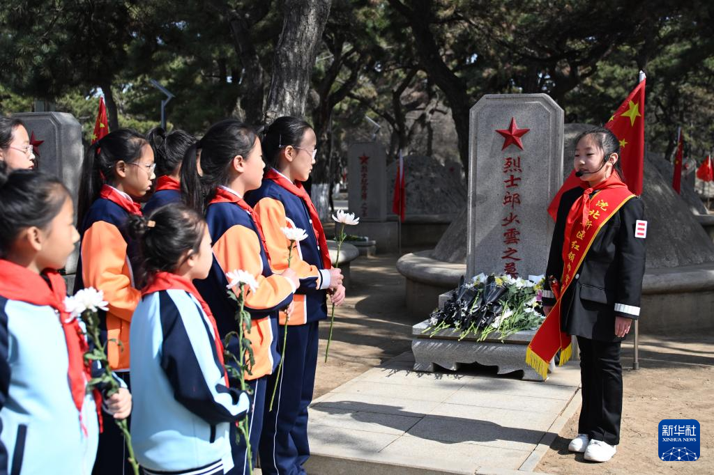 这是4月2日在沈阳抗美援朝烈士陵园拍摄的“青春沈阳、传承荣光——沈阳少先队2024·铸魂·清明祭英烈”特别主题队日活动现场。
