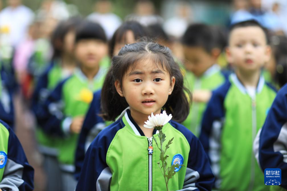 4月3日,在贵州省赤水市红军烈士陵园,小朋友手捧鲜花向英烈致敬。