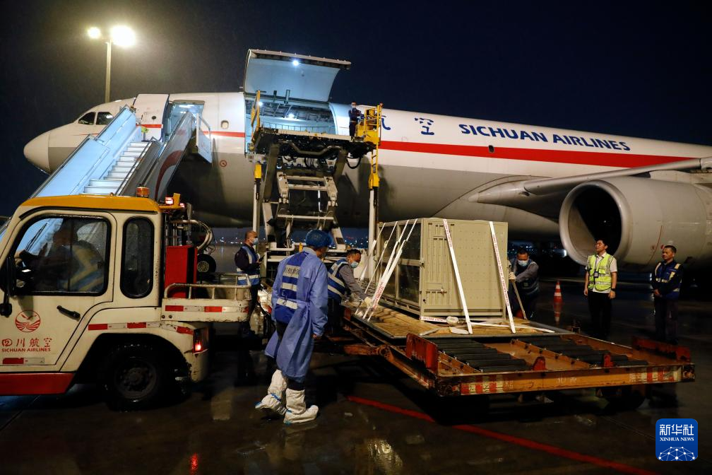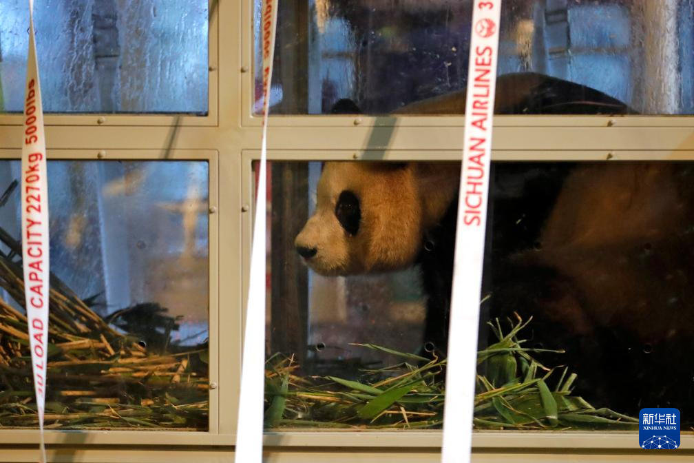 4月3日晚,旅韩大熊猫“福宝”搭乘包机抵达成都双流国际机场。