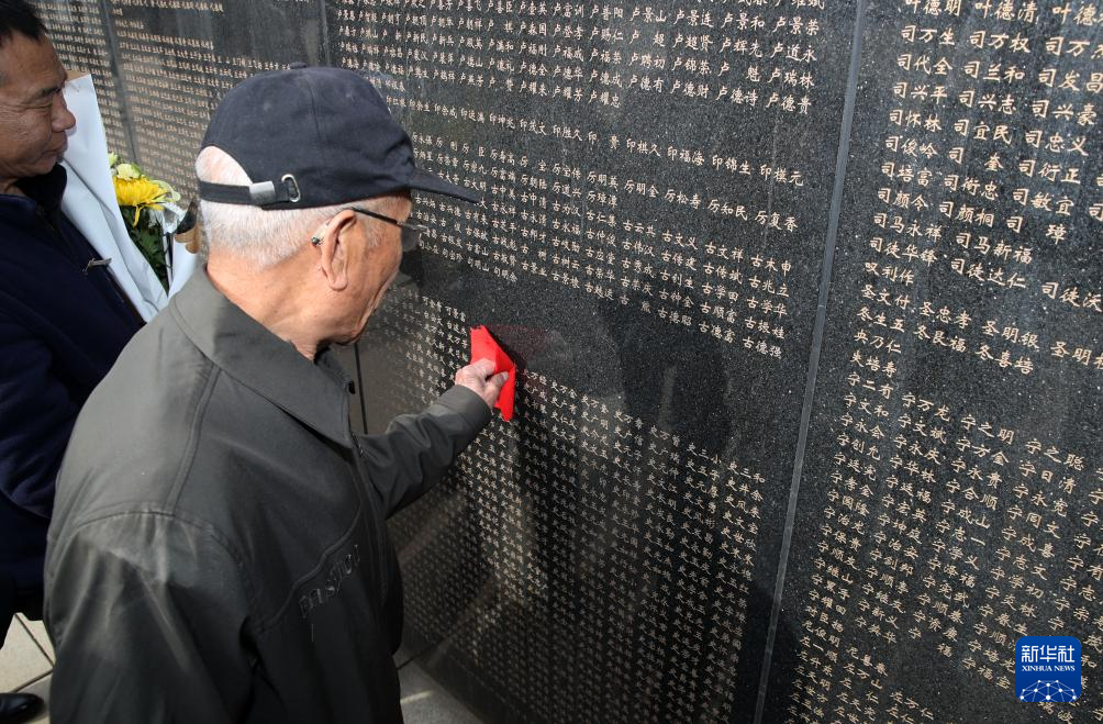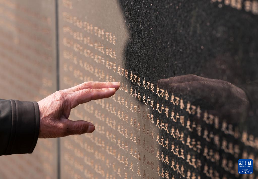 4月3日,在沈阳抗美援朝烈士陵园,史万忠烈士家属在烈士英名墙上寻找亲人名字。