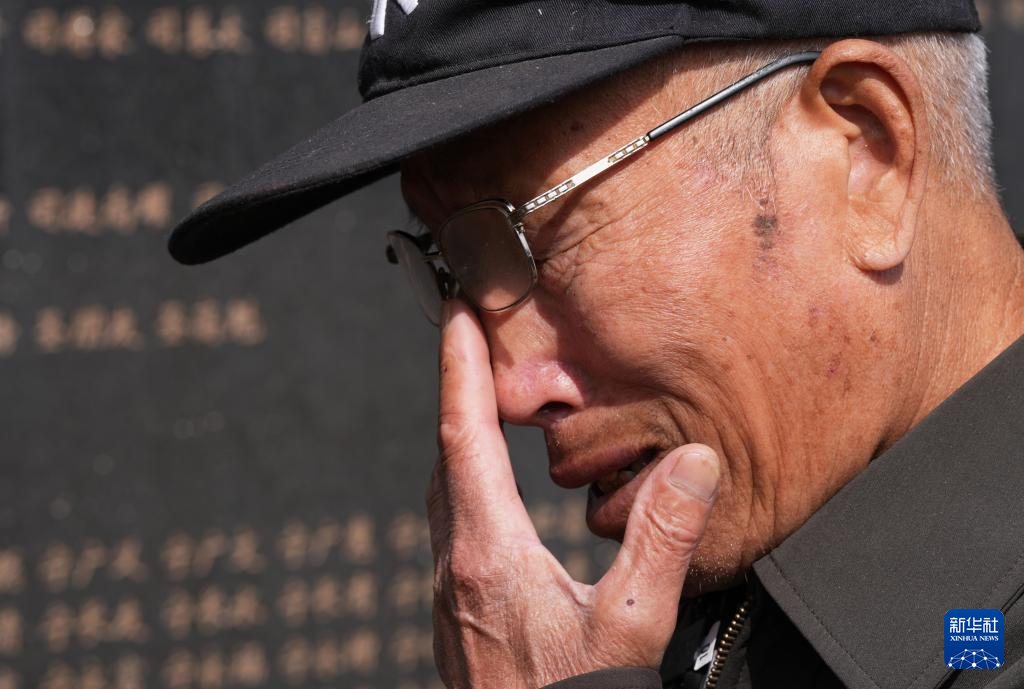 4月3日,在沈阳抗美援朝烈士陵园,史荣升老人落泪。