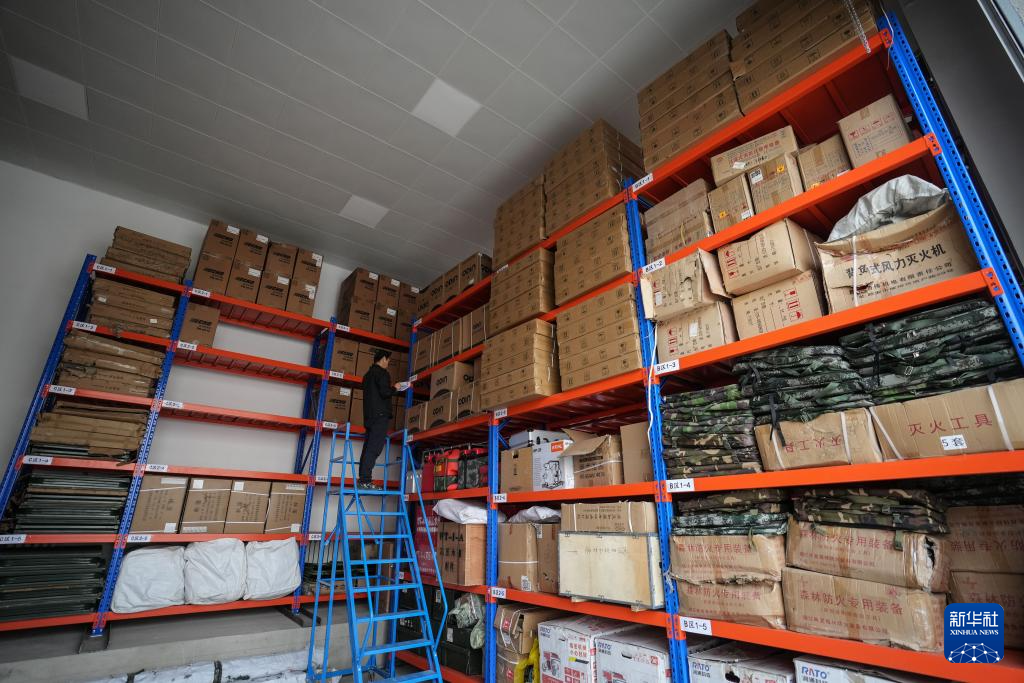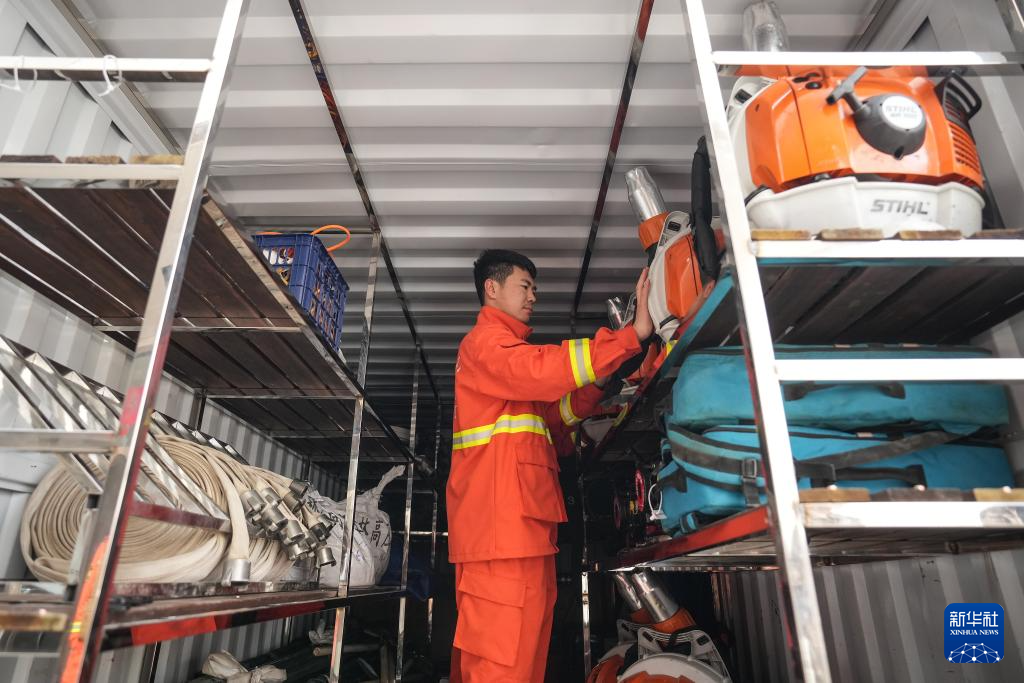 4月2日,本溪市森林消防队的工作人员在本溪市森林防灭火指挥中心库房清点灭火使用的装备。