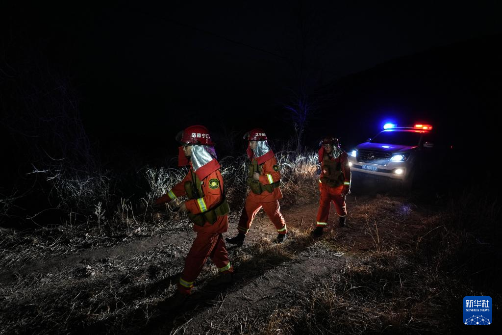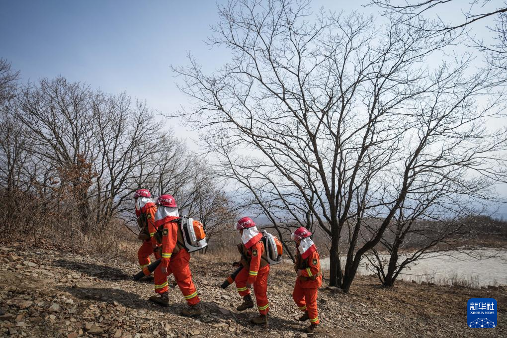 4月2日,本溪市森林消防队的消防员在本溪市西湖区竖井后山进行巡查。