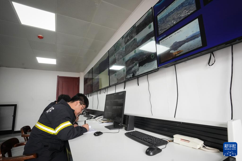 4月2日,本溪市森林消防队的消防员在本溪市森林防灭火指挥中心监控室通过视频对重点部位进行巡查。