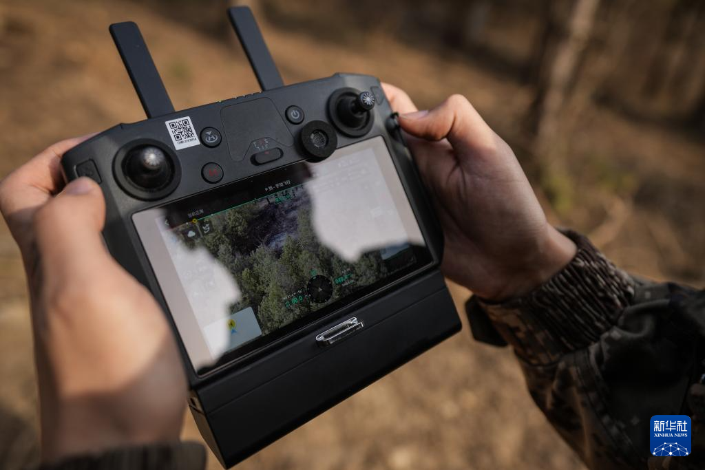 4月2日,本溪市森林消防队的消防员在本溪市明山区处置火情时使用无人机勘查。