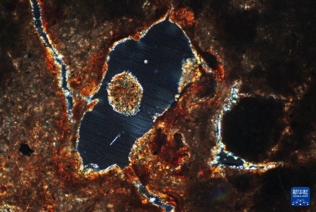4月3日在沈阳农业大学土肥高效利用国家工程研究中心实验室拍摄的土壤微形态薄片(显微摄影)。