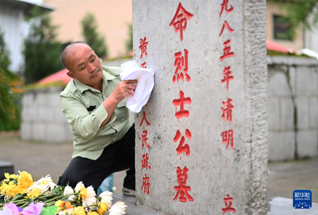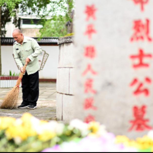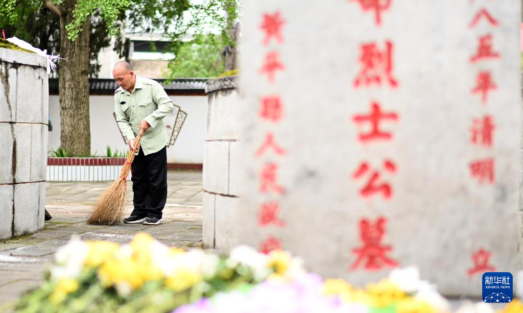 当日是清明节,在贵州省黔东南苗族侗族自治州黄平县旧州镇东门村,62岁的石正祥把烈士陵园打扫得干干净净,以迎接前来缅怀和祭奠先烈的人们。