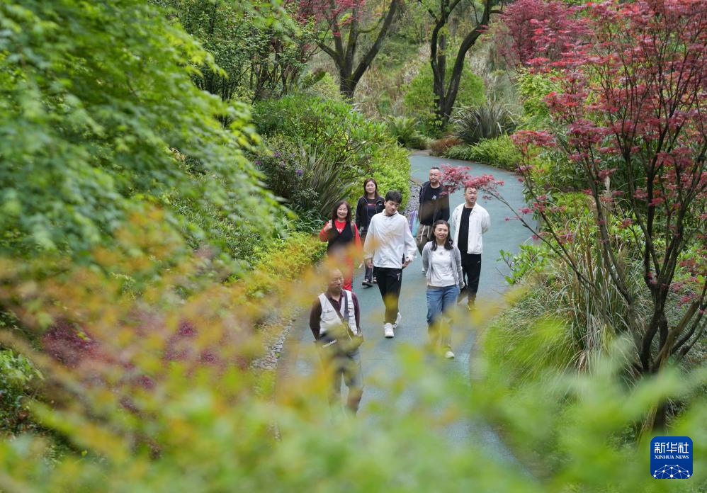 4月4日,游客在河北省石家庄植物园游览。