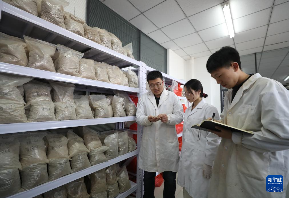4月3日,在位于沈阳农业大学的土肥高效利用国家工程研究中心实验室,工作人员对土壤样品进行观察分析。