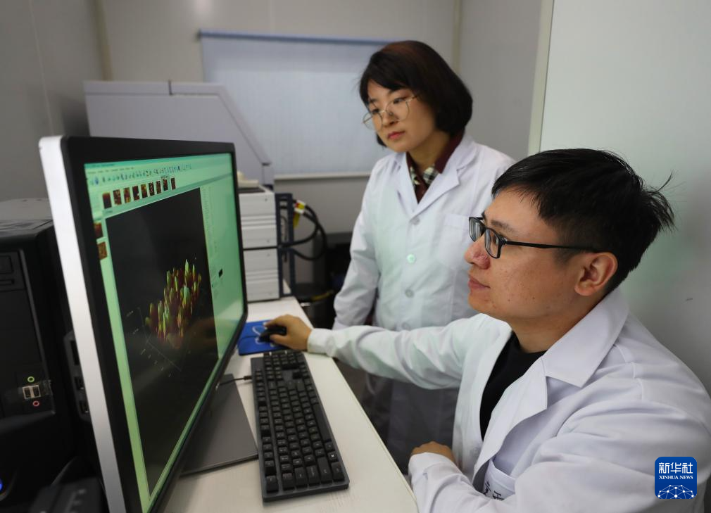 4月3日,在位于沈阳农业大学的土肥高效利用国家工程研究中心实验室,工作人员用原子力显微镜观测土壤胶体颗粒形貌。