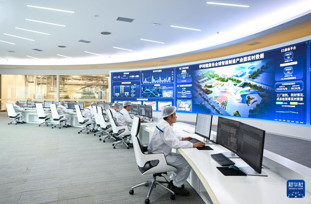 呼和浩特市土默特左旗伊利现代智慧健康谷全球智能制造产业园液态奶全球智造标杆基地智控中心(4月4日摄)。