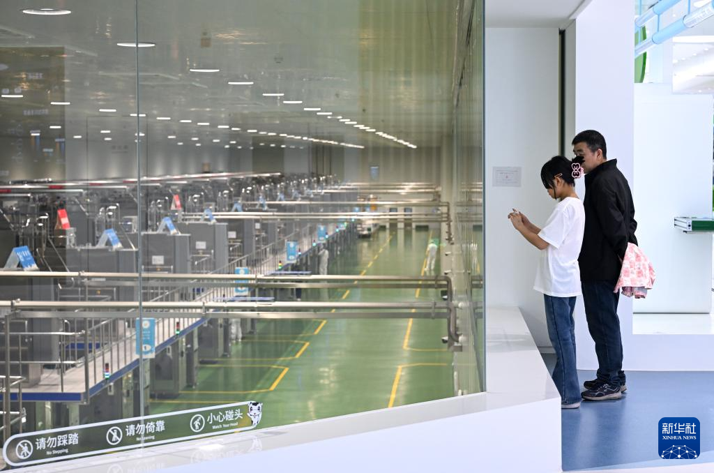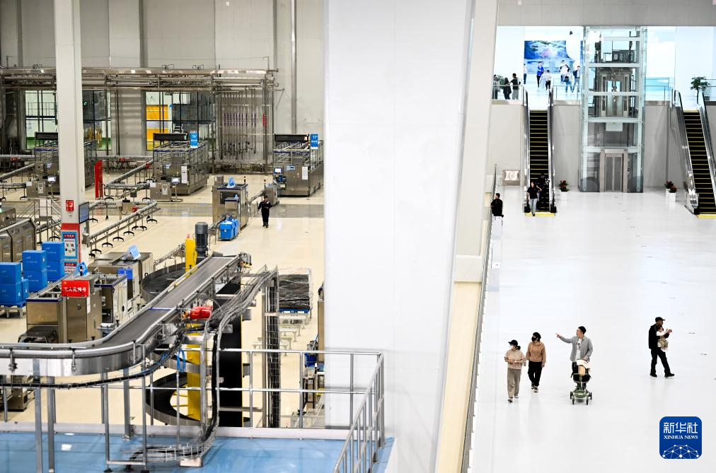 4月4日,游客在呼和浩特市土默特左旗伊利现代智慧健康谷全球智能制造产业园液态奶全球智造标杆基地参观。