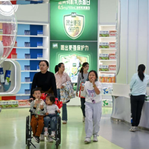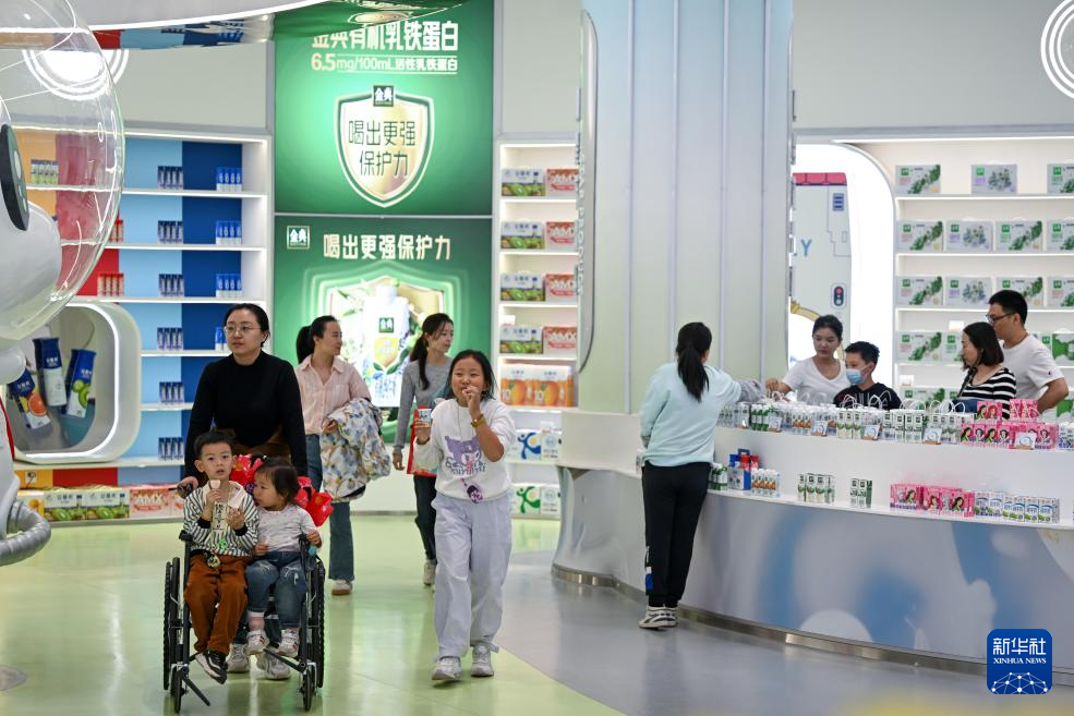 4月4日,游客在呼和浩特市土默特左旗伊利现代智慧健康谷全球智能制造产业园限定商店参观。