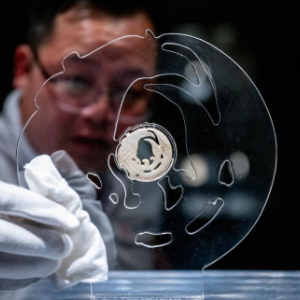 3月30日,收藏于中国国家博物馆的玉团凤抵达武汉盘龙城遗址博物院,亮相“玉神——石家河玉文化特展”。这是工作人员在布置展品玉团凤。