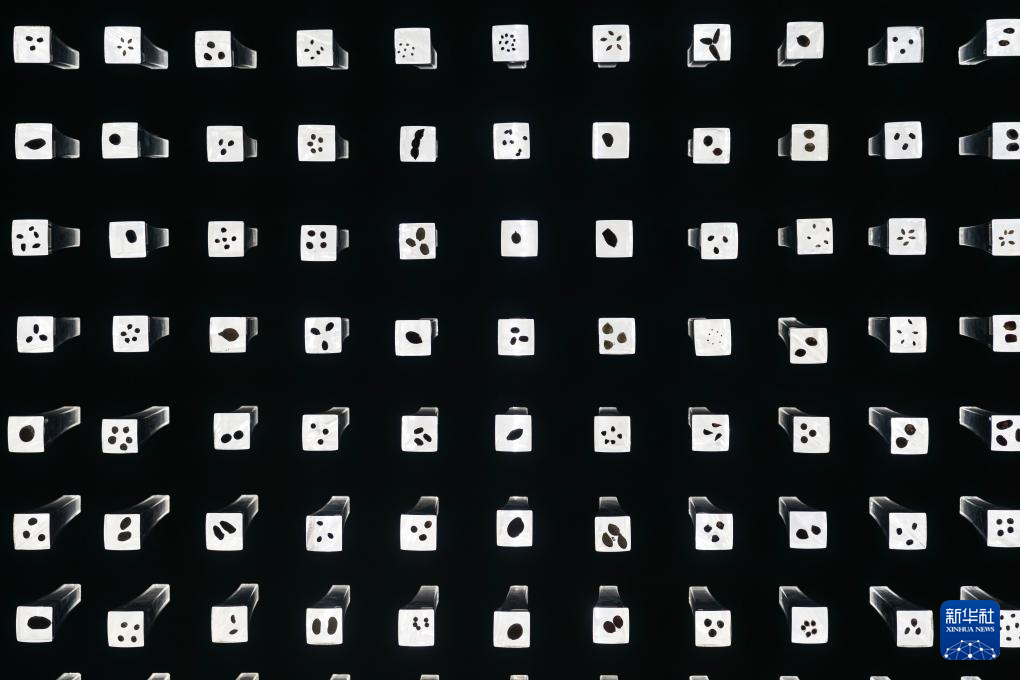 这是3月29日拍摄的“扶荔宫”种子博物馆亚克力柱种子墙。
