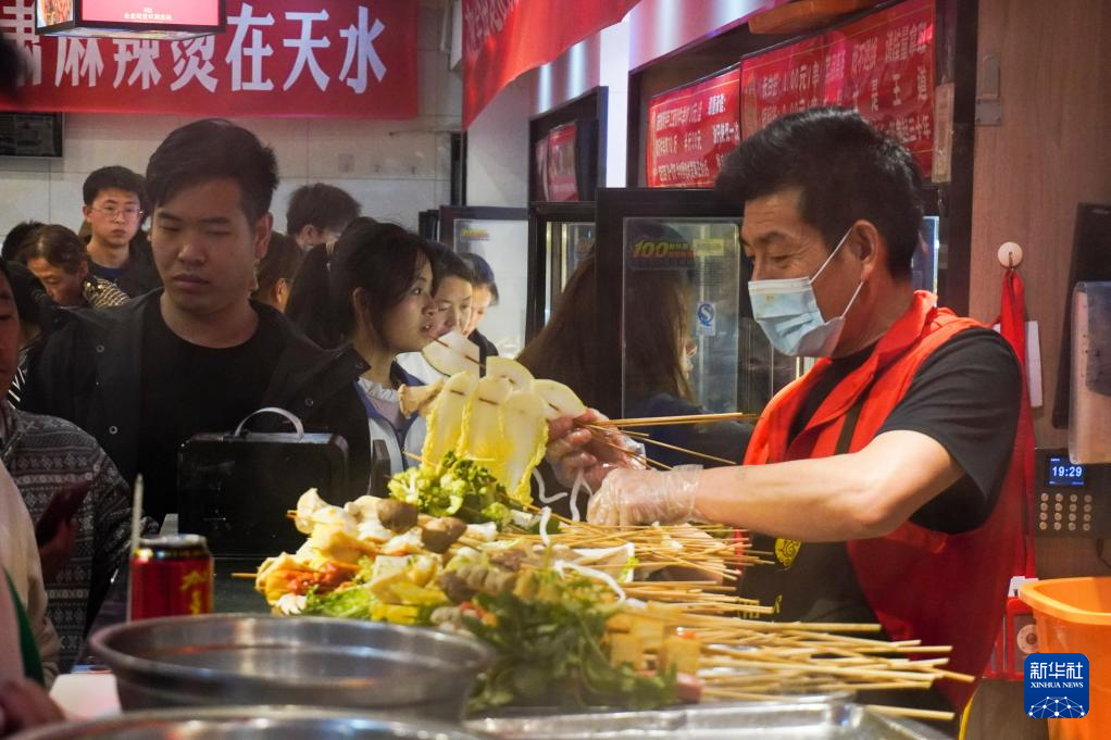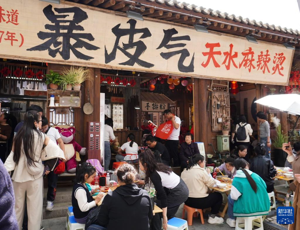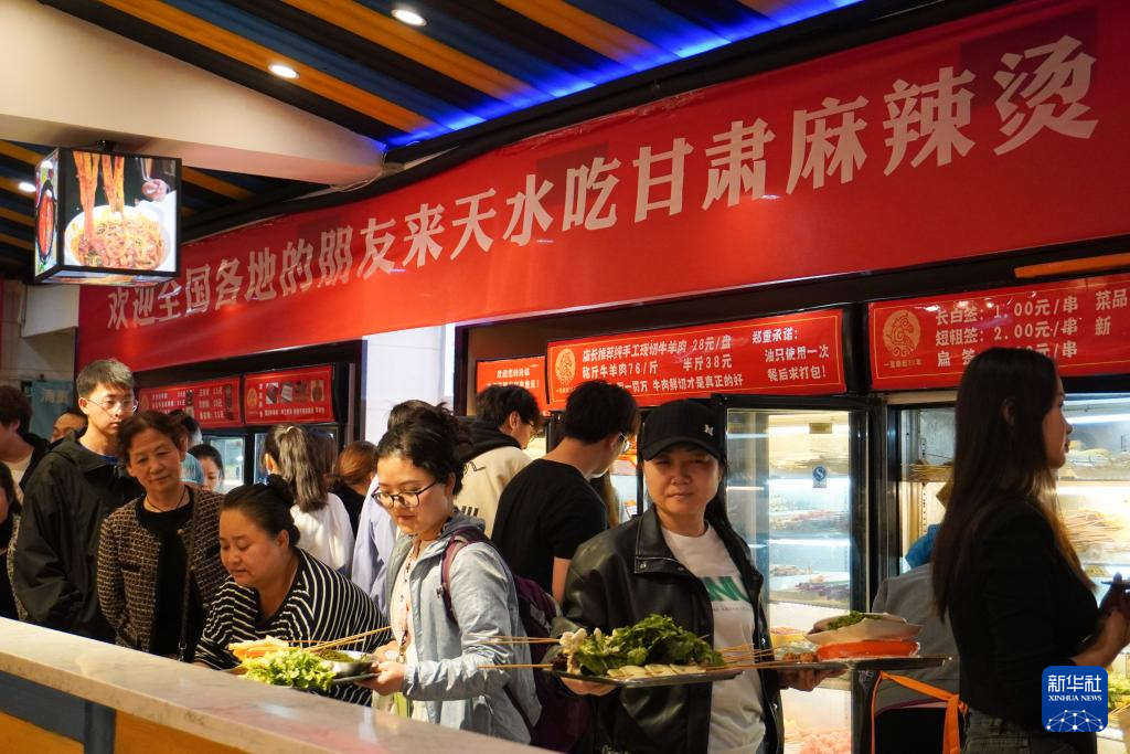4月4日,游客在位于天水市秦州区的一家麻辣烫店吃麻辣烫。