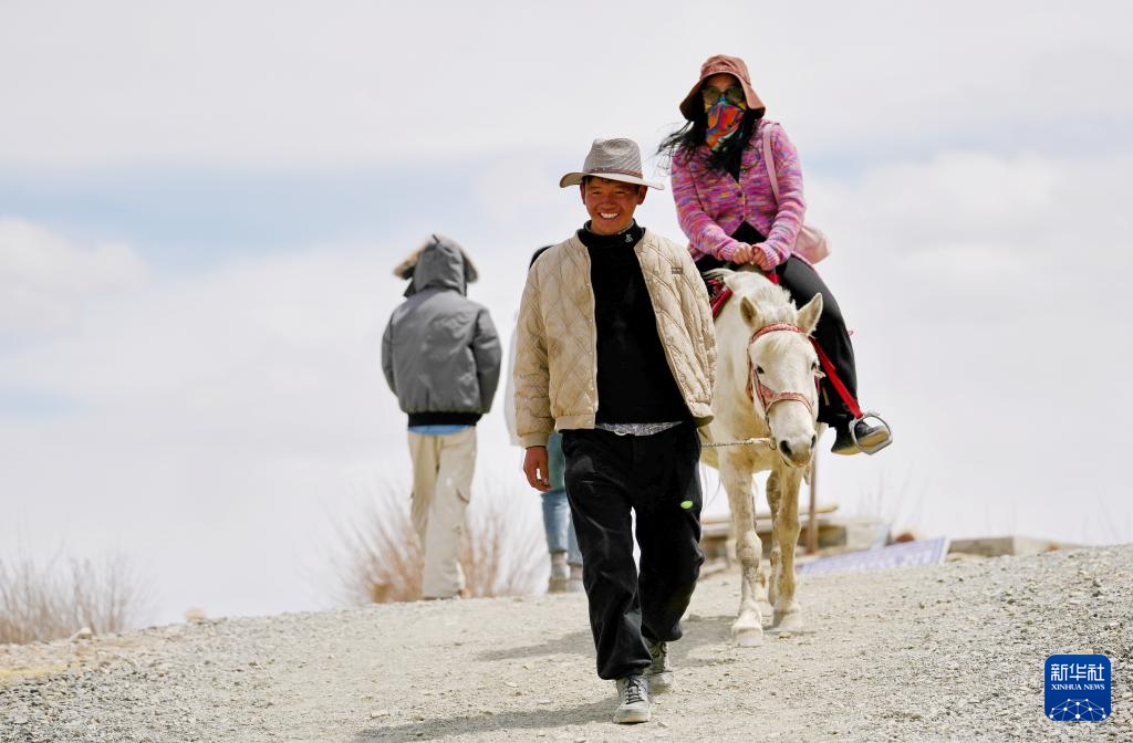 羊卓雍错北岸的村民为游客提供骑马服务(4月5日摄)。