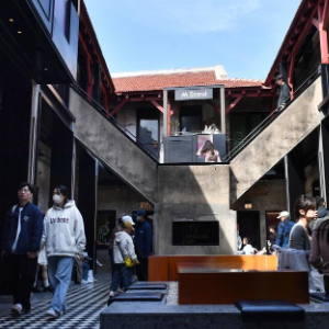 4月4日,游客在青岛市市南区银鱼巷游玩。