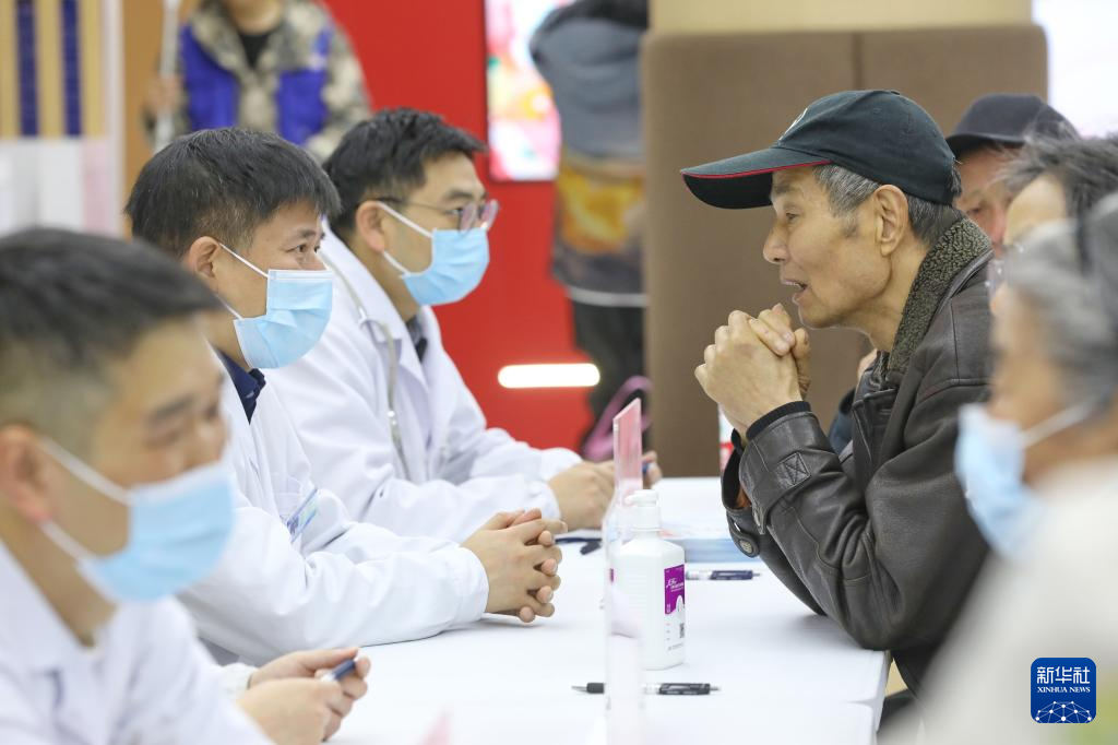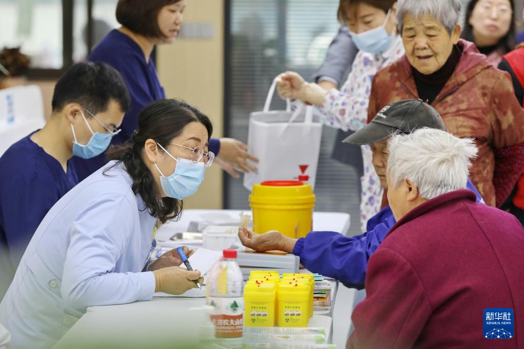 4月7日,在浙江省嘉兴市南湖区新兴街道城南社区,海警医院医生为居民义诊。