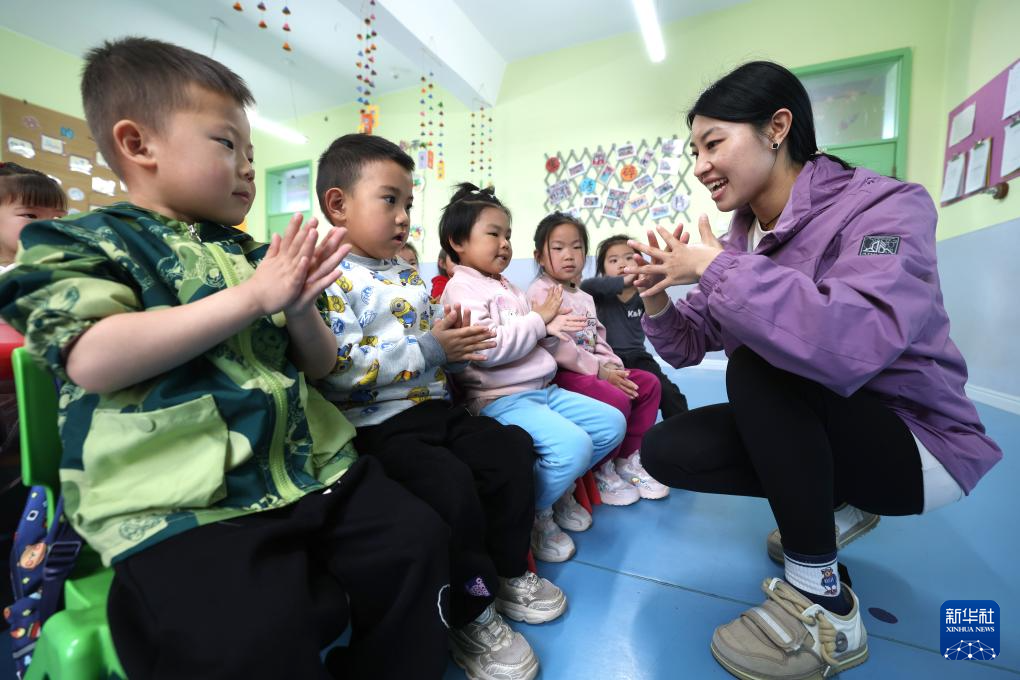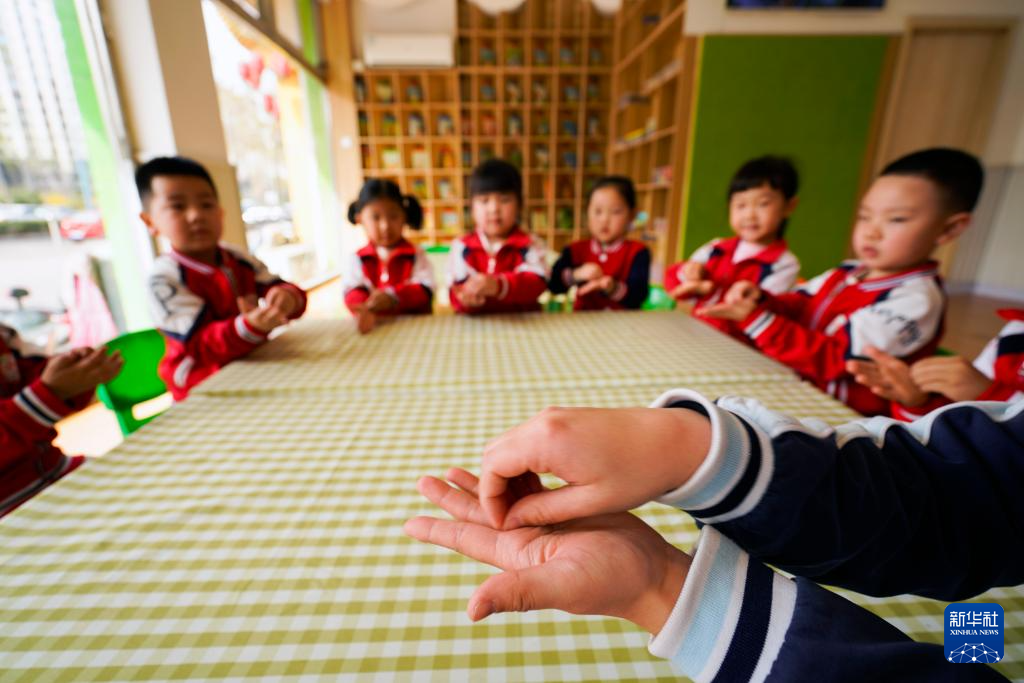 4月7日,在河北省石家庄晋州市第三幼儿园,小朋友在老师指导下学习“七步洗手法”。