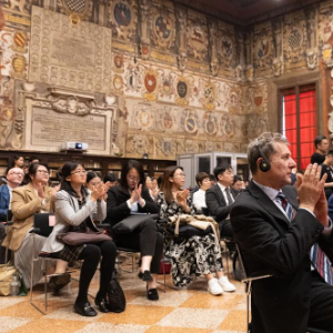 4月8日,与会嘉宾在意大利博洛尼亚出席世界少儿出版发展论坛。