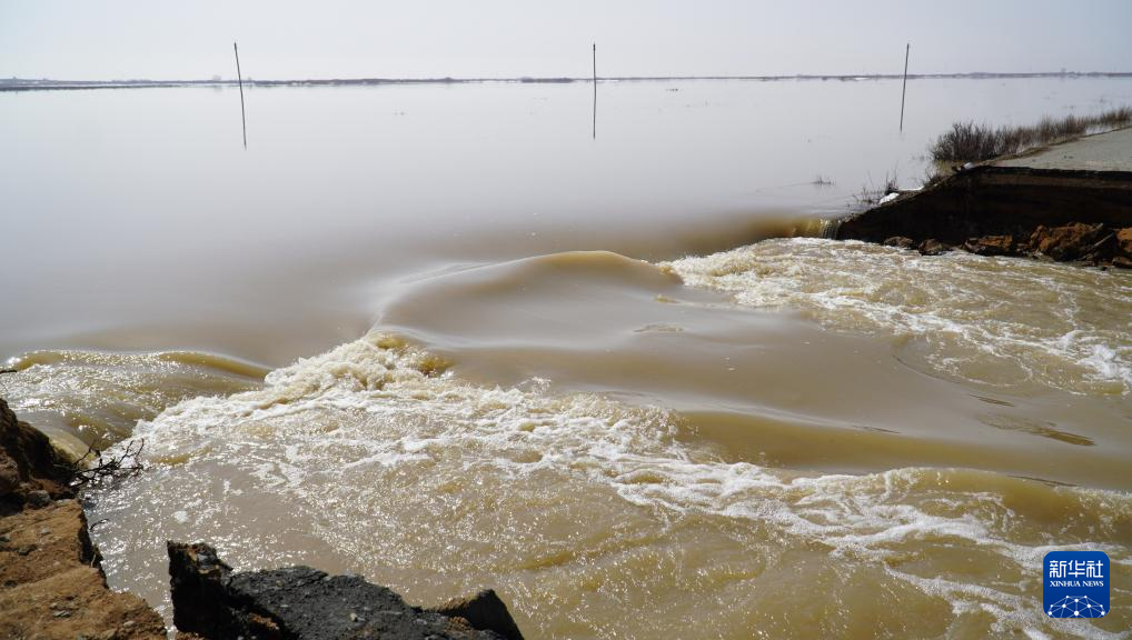 这是4月5日在哈萨克斯坦阿克莫拉州拍摄的泛滥洪水。