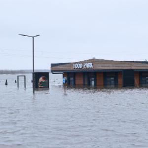 4月7日,哈萨克斯坦科斯塔奈州的一家电器商场被洪水淹没。