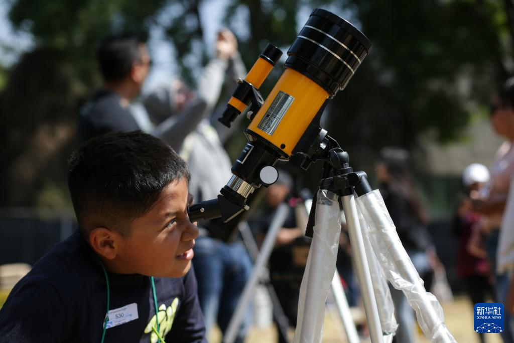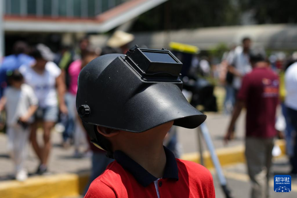 4月8日,一名男孩在墨西哥首都墨西哥城的一家天文馆外观看日食。