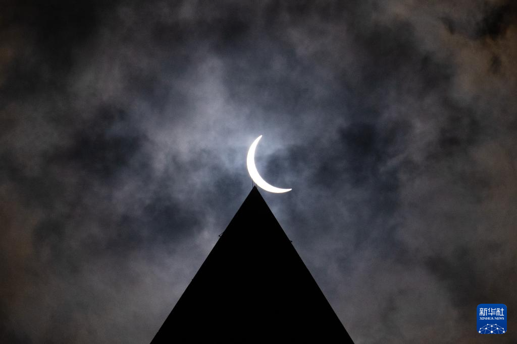 这是4月8日在美国首都华盛顿拍摄的日食景观。