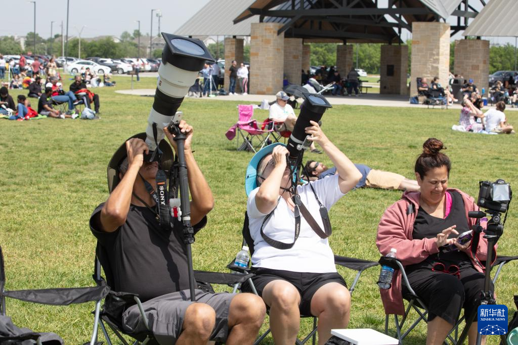 4月8日,人们在美国得克萨斯州达拉斯北郊观看日食。