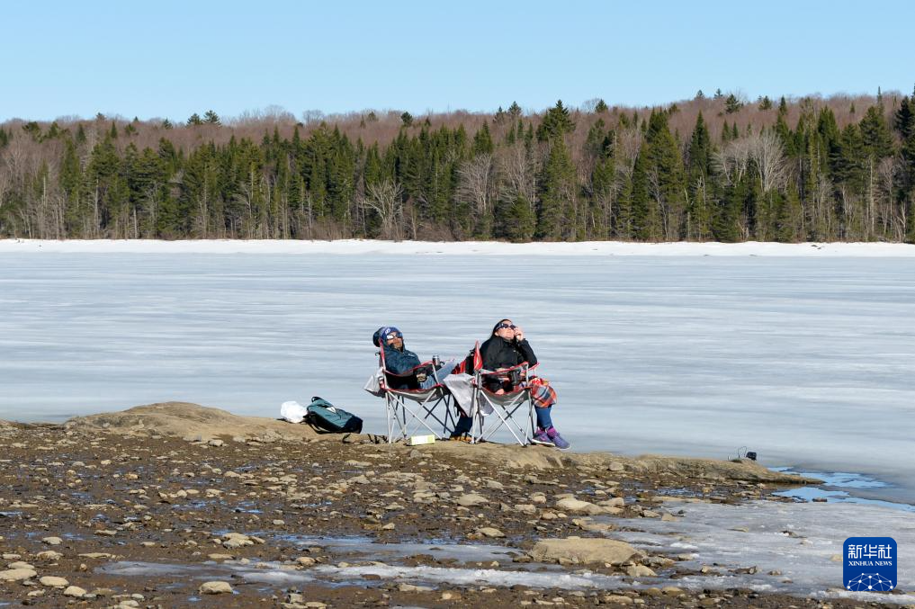 4月8日,人们在加拿大安大略省斯坦利港观看日食。