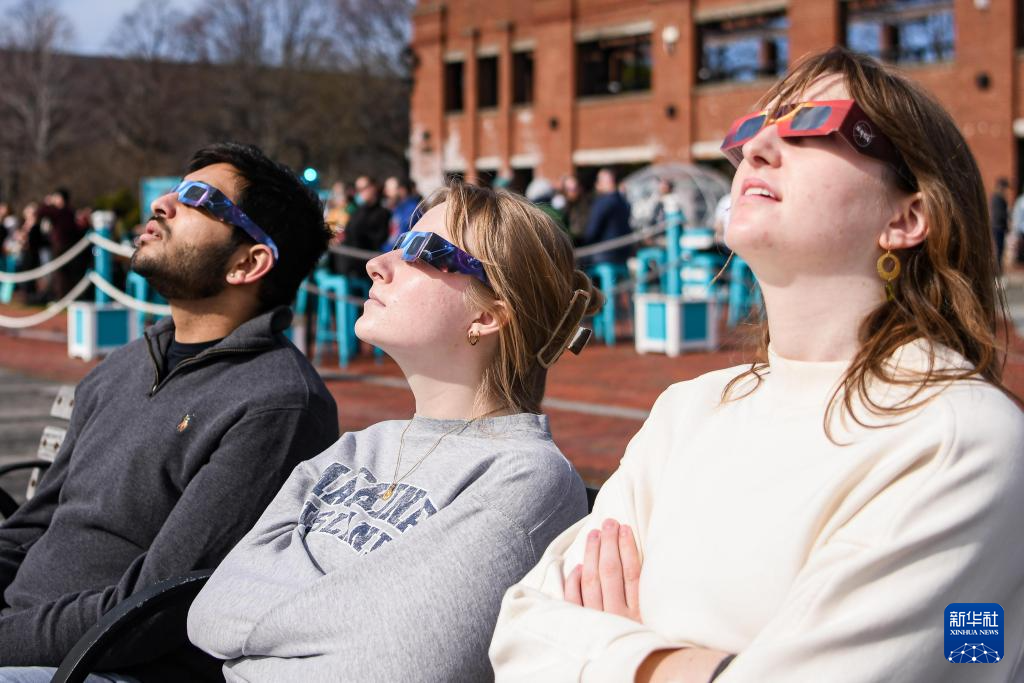 4月8日,人们在美国新罕布什尔州匹兹堡观看日食。