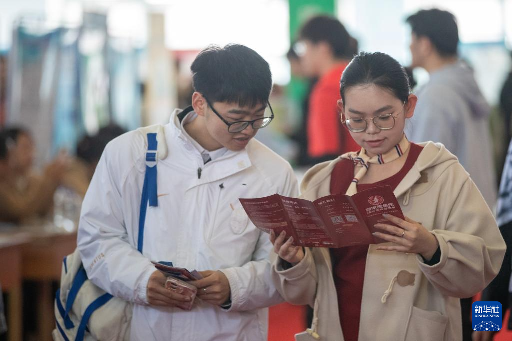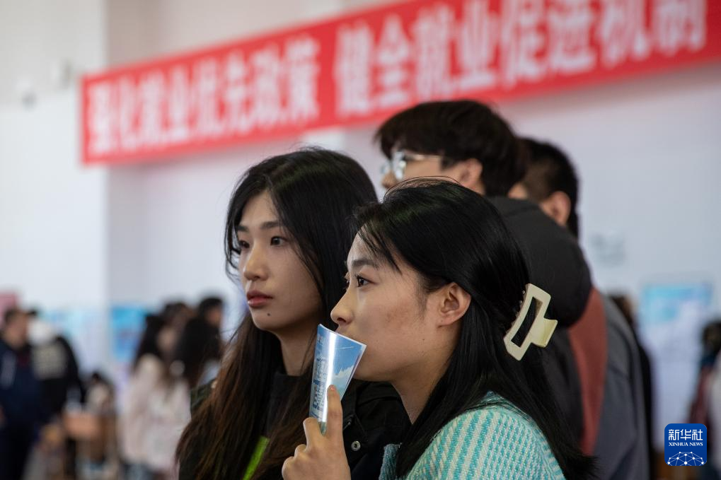 4月9日,求职者在联合招聘会现场浏览岗位信息。