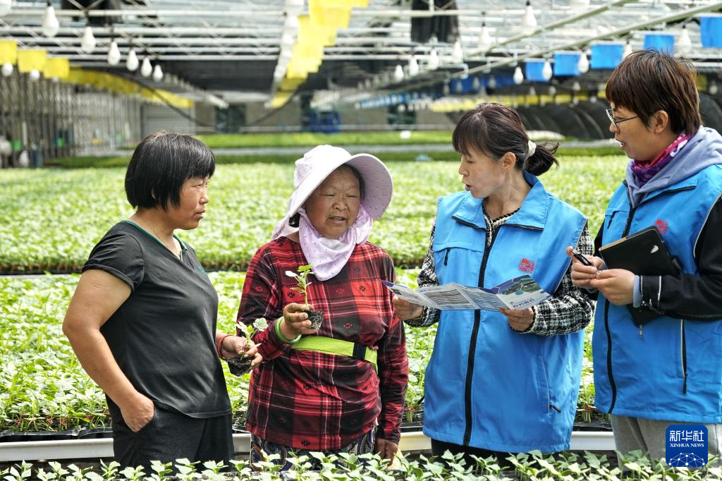 大兴区庞各庄镇东南次村政务服务站的工作人员来到四季阳坤农业园区为山东来的务工农民办理异地医保联通业务(4月9日摄)。