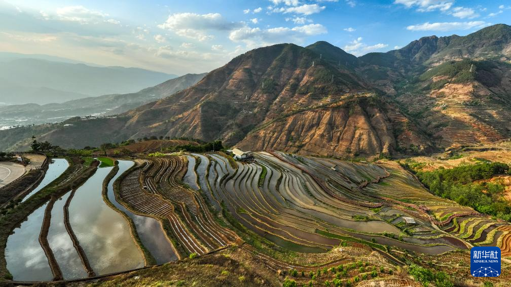 这是4月9日拍摄的米易县新山傈僳族乡的梯田(无人机照片)。