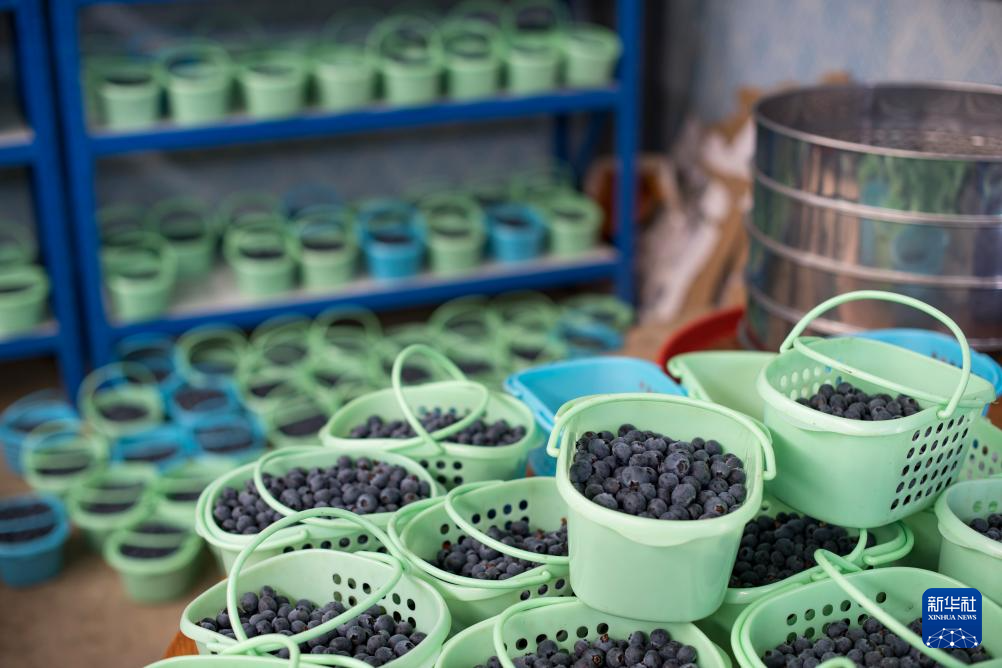 这是4月9日在米易县普威镇一个蓝莓种植基地内拍摄的刚采摘的蓝莓。