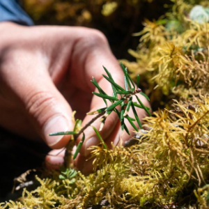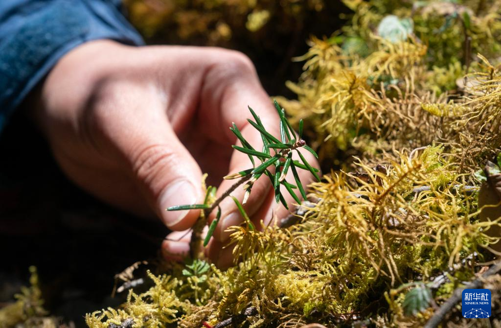 这是3月28日在丽江高山植物园云杉坪大样地内拍摄的一株野生杉树幼苗。