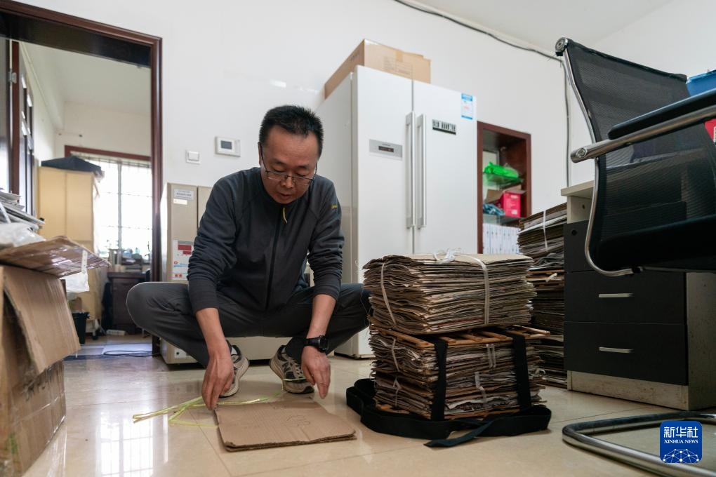 许琨在位于丽江市玉龙县的办事处内整理收集的植物标本(3月25日摄)。