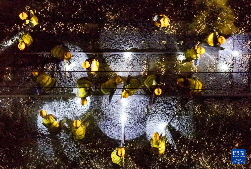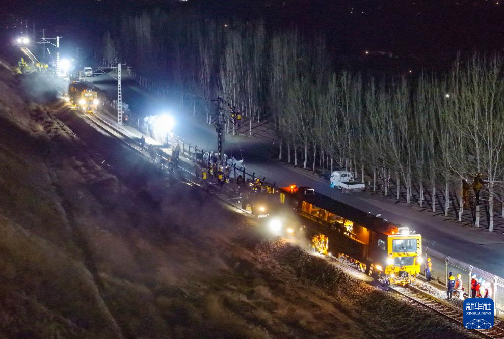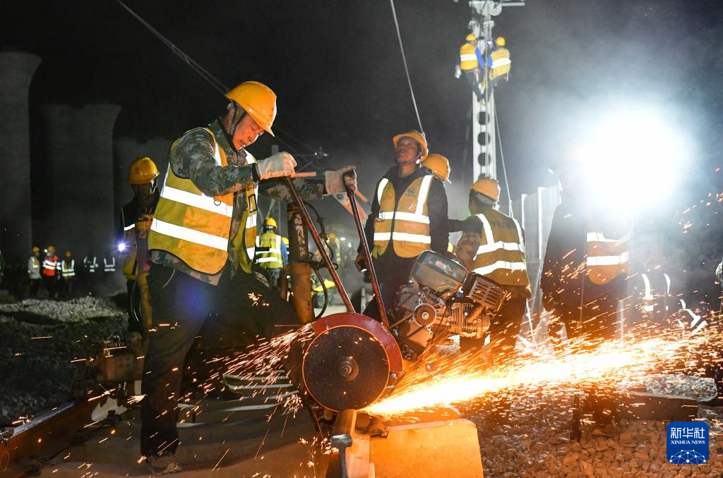 4月10日,建设者在包西上行铁路封锁拨接施工现场作业。