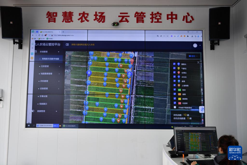 当日,湖南省益阳市的大通湖区再生稻无人农场开始插秧。该农场可实现农机作业任务远程创建与远程控制,利用智慧农业平台实现水稻生产全程数据采集分析、农事指令智能决策和农机作业智能执行。