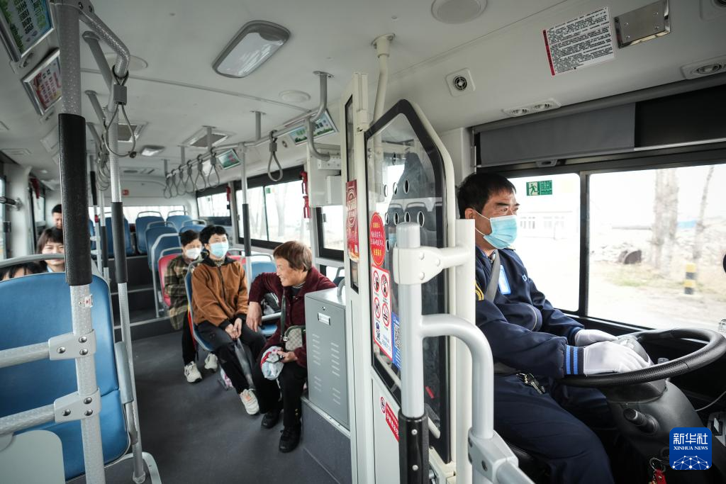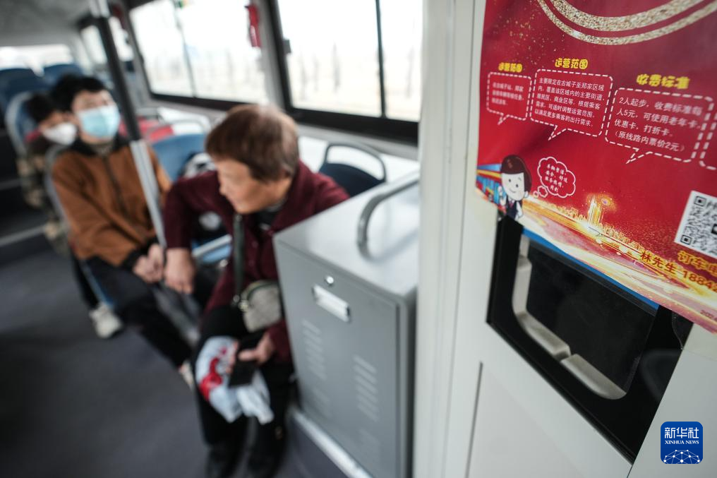 4月10日,村民乘坐预约的“网约公交车”出行。