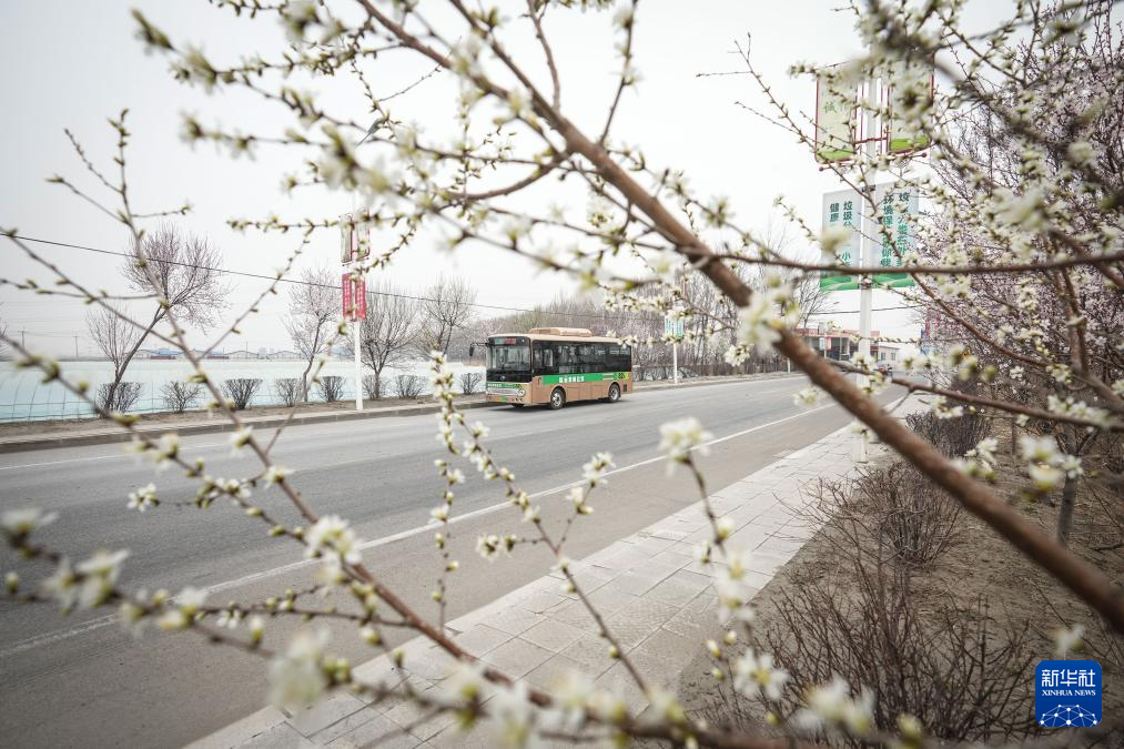4月10日拍摄的盘锦市盘山县古城子镇运营的“网约公交车”。