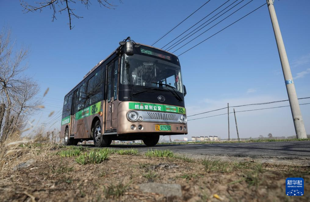 4月8日拍摄的盘锦市盘山县古城子镇运营的“网约公交车”。
