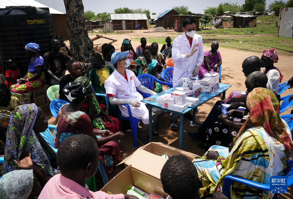 当日,中国第十一批援南苏丹医疗队在这里为村民开展义诊,并向该村捐赠了药物、医疗器械、食品、饮用水、防蚊用具等物资。