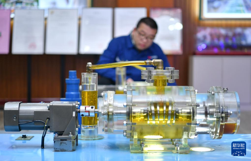 4月10日,位于泊头市的河北恒盛泵业股份有限公司工作人员在产品展厅内工作。