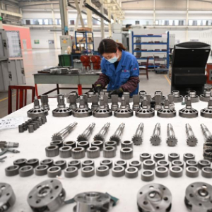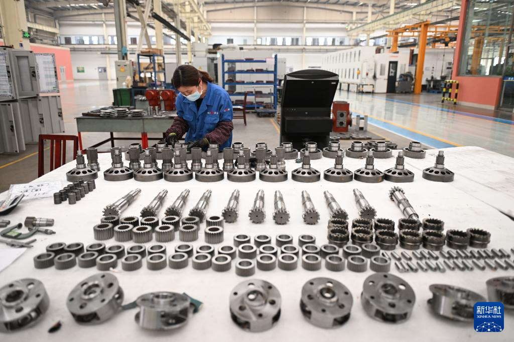 4月10日,位于泊头市的河北恒盛泵业股份有限公司工人在检测产品零部件质量。