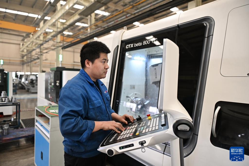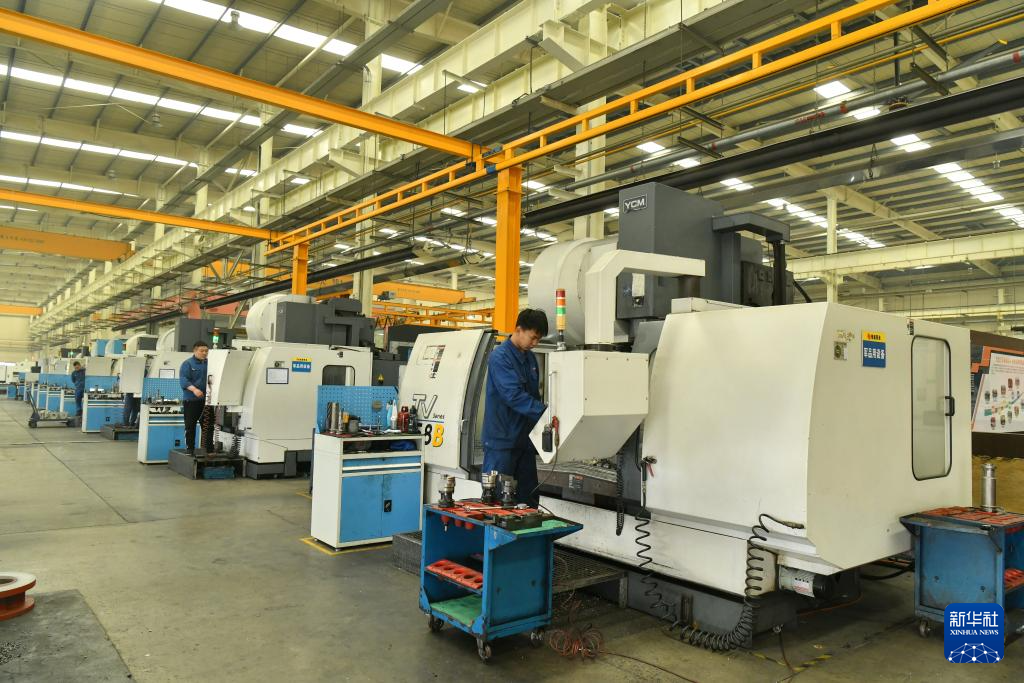 4月10日,位于泊头市的河北恒盛泵业股份有限公司工人在操作精密加工设备。