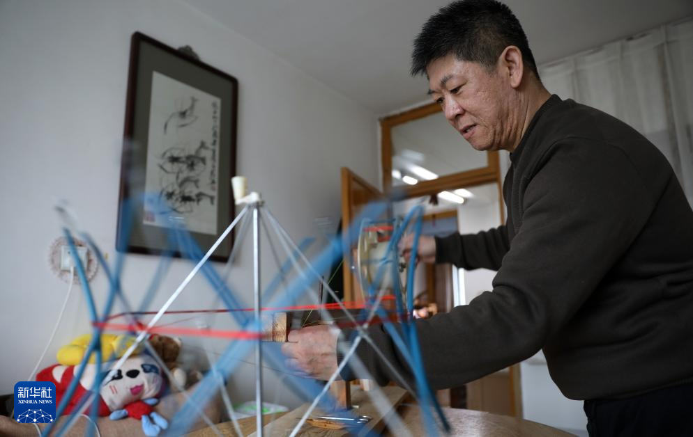 4月9日,申涛在位于营口市的家中用摇线机进行摇线。